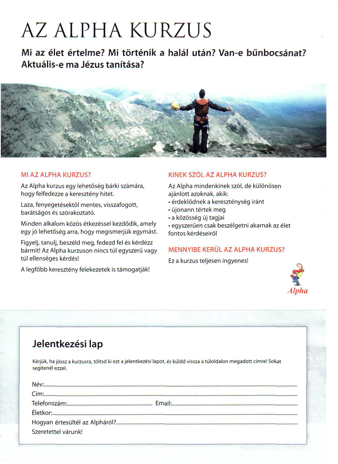 Meghívó az Alpha kurzusra színes jelentkezési lap Alpha-kurzus, ha már hívő vagy? Akik szívesen segítenek is... alphától ómegáig... |